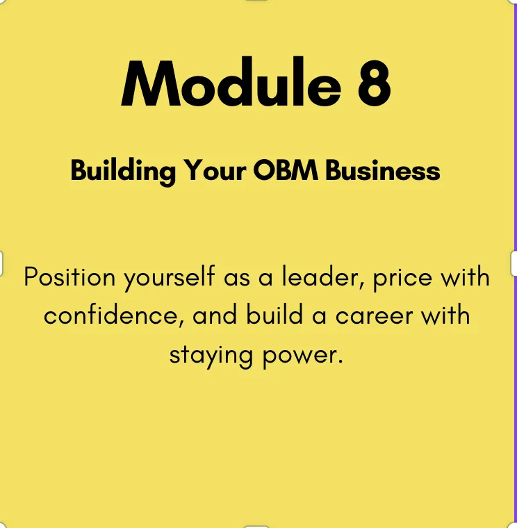 This programme reflects that shift, combining proven operations training with practical, business-ready AI capability. Students can begin offering services as early as month two, supported by experienced Certified OBM® trainers.