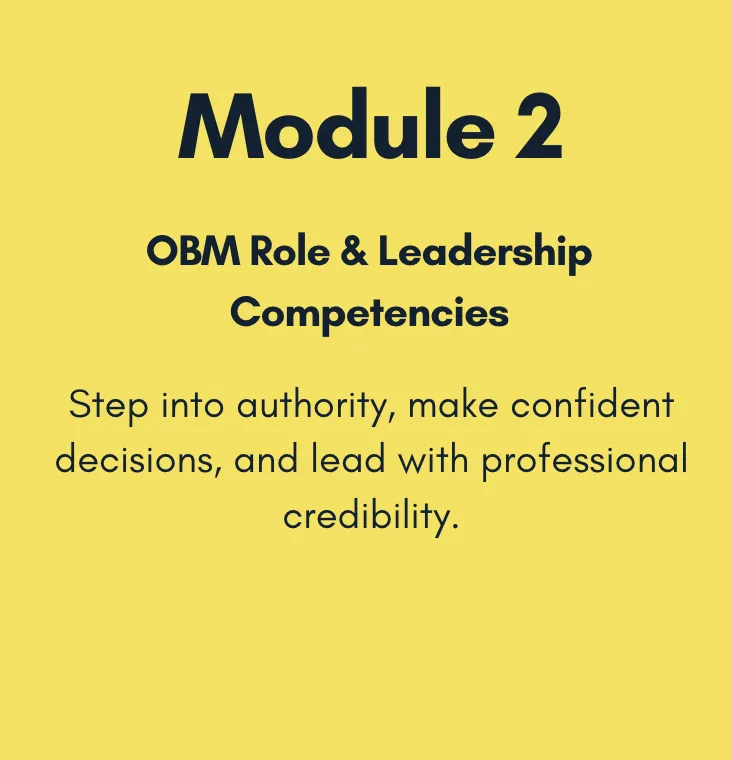 An AI-Empowered, Certified Online Business Manager®, often called a Certified OBM, is a senior operations leader who oversees how a business runs day-to-day and long term. This includes systems, projects, team coordination, delivery standards, and performance.