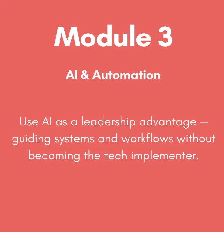 As businesses grow faster, operate with leaner teams, and integrate AI into day-to-day operations, the role of the OBM has changed. This programme reflects those realities, combining established operations leadership training with practical, business-ready AI capability.